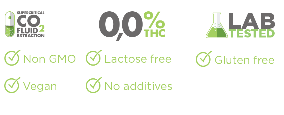 - CBD - Kanepitaimsest ekstraheeritud puhtal kujul 500 mg CBD.